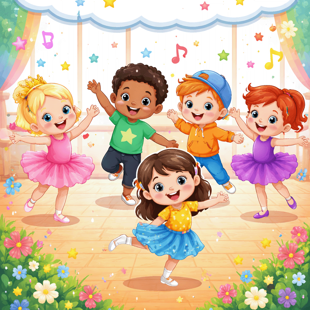 Spielerisch tanzen lernen: Im Kindertanz fördern wir Motorik, Rhythmusgefühl und Spaß an der Bewegung – ideal für Kinder von 3-6 Jahren